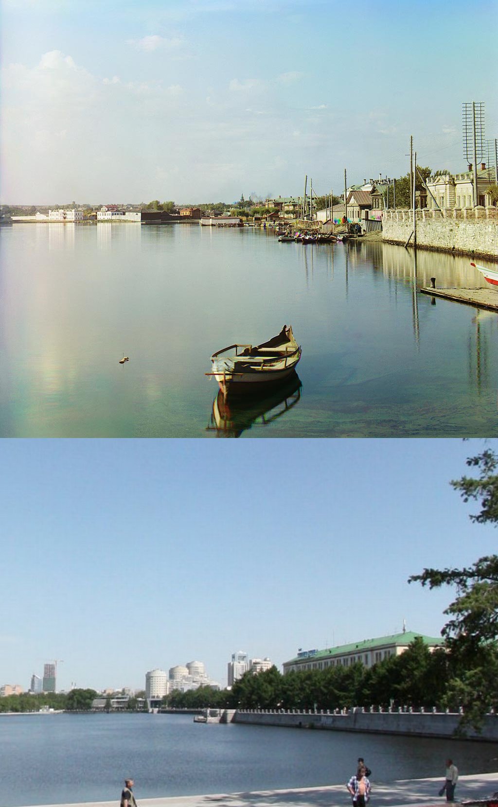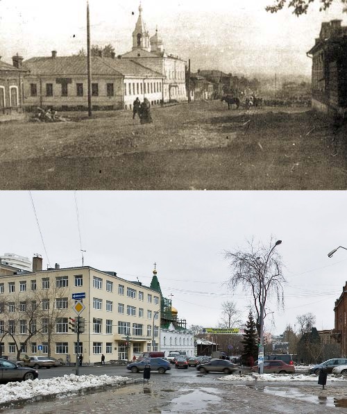 Места съёмки немного не совпадают. Современное фото сделано ближе к Малышева метров на 30-40.