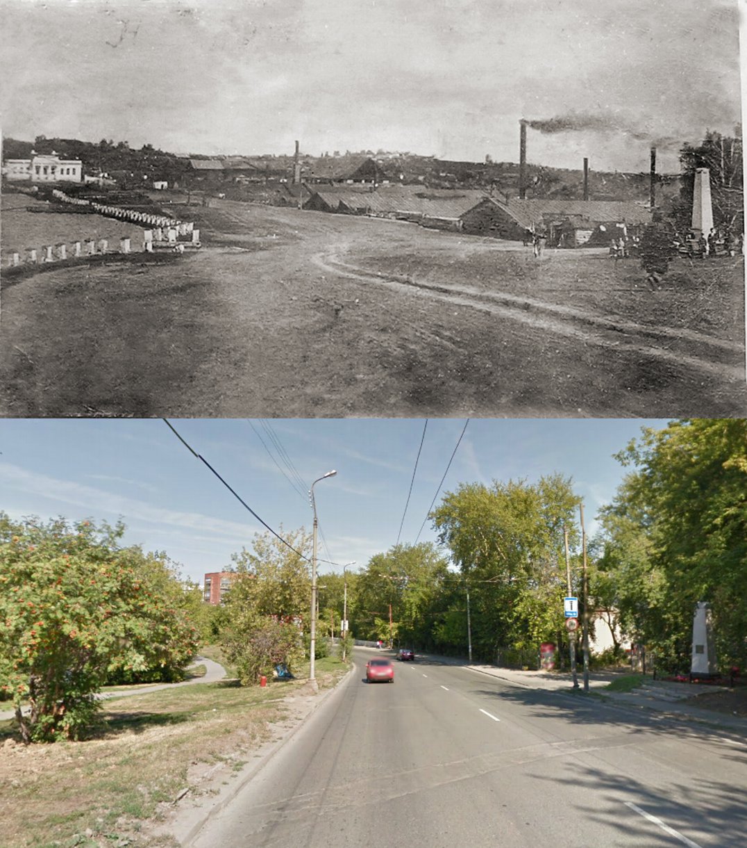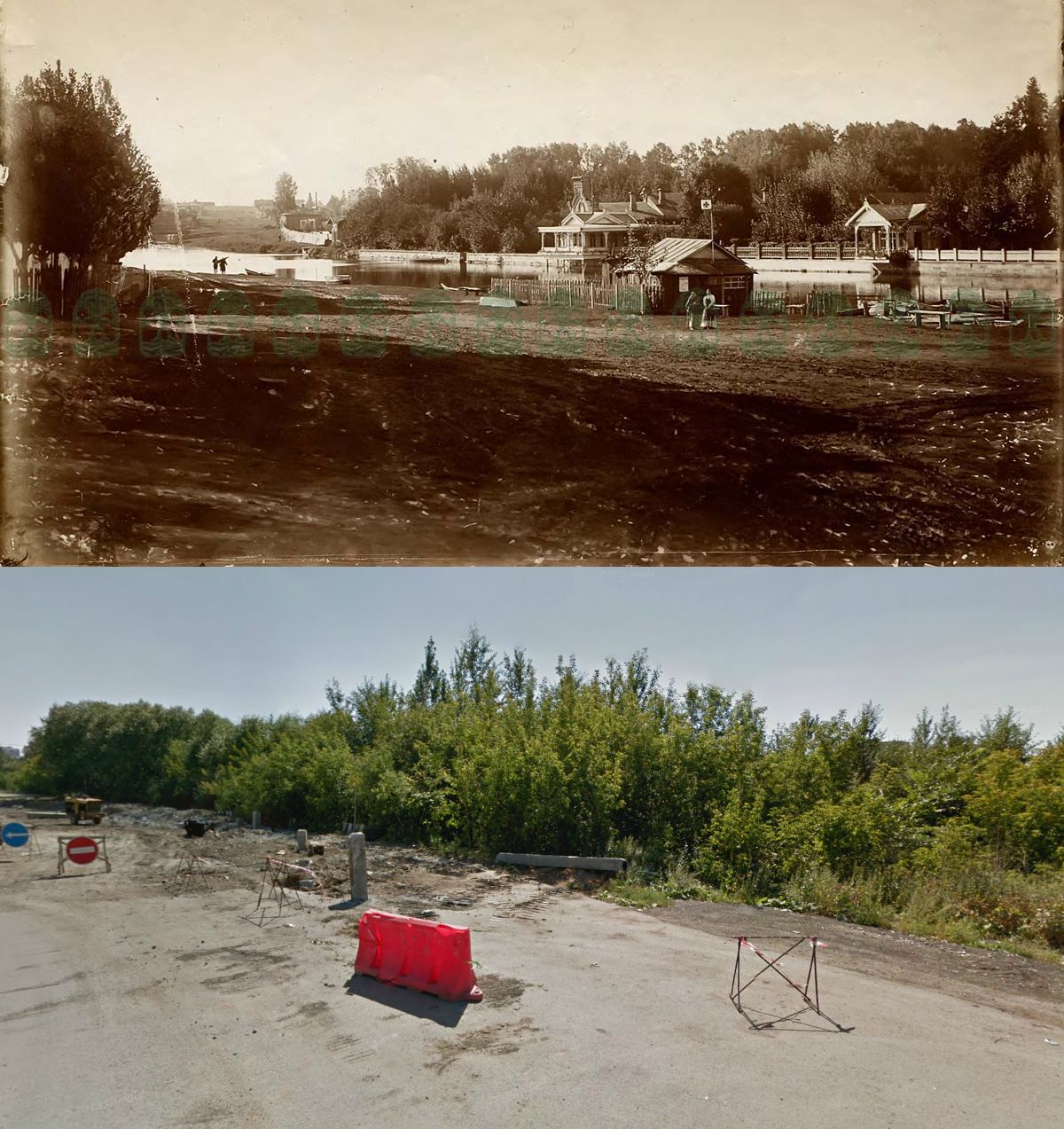 Пропорции явно искажены у старой фотографии (вытянута по горизонтали). Может лучше было бы её "подгонять"? Не совсем так. Я снимал сюжет по памяти и промазал с точкой съёмки метров на 50 к востоку. При подгонке пришлось мой снимок "поворачивать" в редакторе, что привело к растяжению более близких объектов - машин. Конечно немного неаккуратно. Может пересниму кадр. |