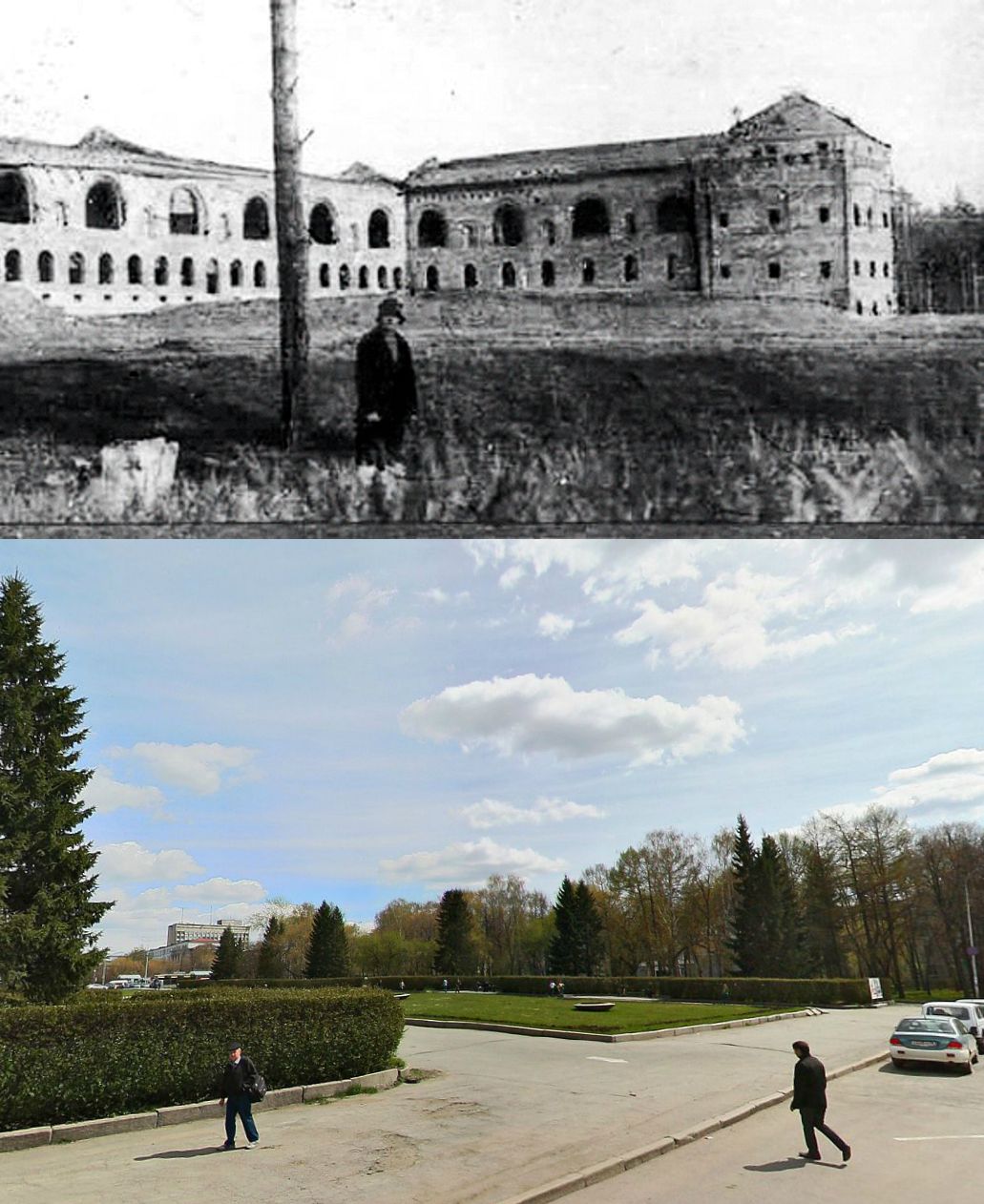 Снимки из сообщений fortа Обелиск сориентирован гранью паралельно Тружеников и перпендикулярно плотине как раньше так и сейчас. И на сколько я слышал местоположение не менял. Основание-плиту памятника закопали, там якобы тоже какие-то надписи были. Труженников на старом снимке двойная, та сторона которая проходила возле домов и обходила обелиск со стороны церкви не сохранилась, ближняя к заводу сторона, выходящяя к обелиску со стороны плотины, осталась. на первом дореволюцтооном снимке за храмом на вершине какая-то ротонда или беседка, кто знает что это |