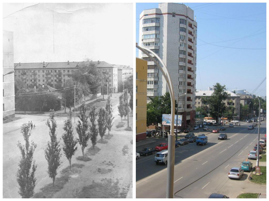 Наталья Зырянова FB: Пирамидальные тополя на улице Шевченко. Посажены в 1970-х, срублены в 2006-м, при строительстве моста! Сорок лет росли! Пуха не давали совершенно! Была чудесная тихая улица, которая превратилась в автомобильный ад: круглосуточный шум, пыль, выхлопы... Жители писали письма, чтобы восстановить зеленые насаждения. Нет, ответили городские власти, теперь газон узенький. а под ним проходят коммуникации... негде деревья сажать... и, кроме того, инсоляция уменьшится... А то, что высоченные тополя задерживали шум, пыль на себя принимали, до этого дела нет тем, кто в тихих коттеджных поселках живет.