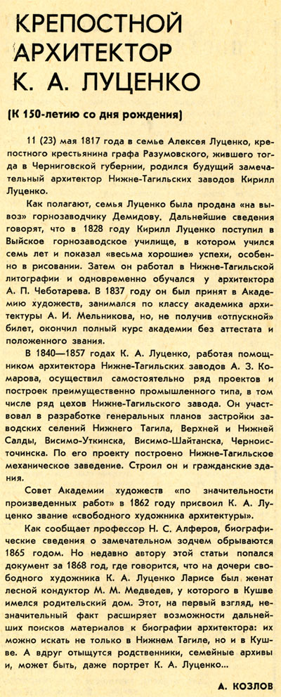 Крепостной архитектор К.А.Луценко.