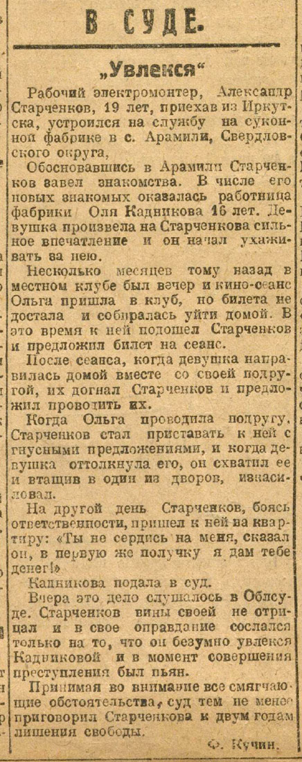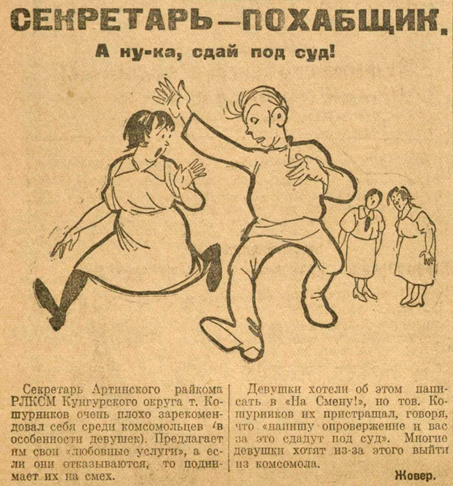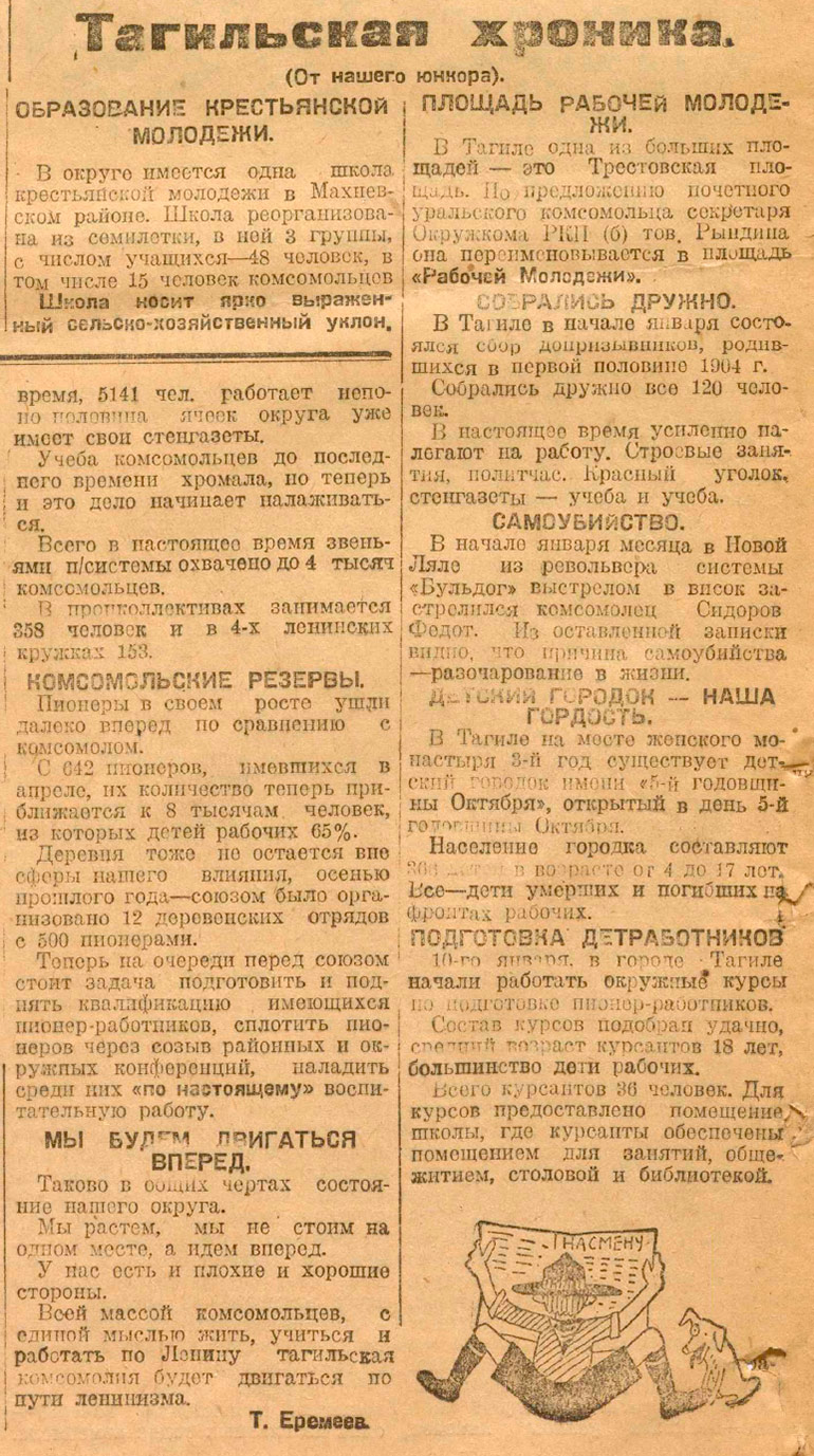 Про секретаря Артинского райкома. Заметка опубликована в газете "На смену!" 6 февраля 1925г. ![]() |