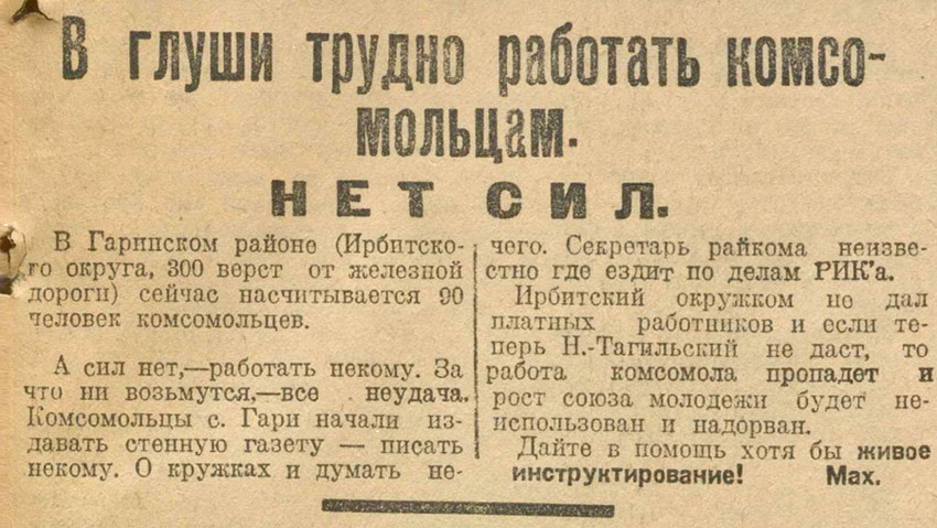 Заметка опубликована в газете "На смену!" 26 ноября 1925г. ![]() |