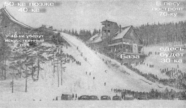 Хочу уточнить по трамплинам. Я помню три трамплина - большой, самый верхний (вероятно 40-ка) - ныне сохранился; вокруг него валяются те самые ГДР-овские щетки в большом количестве. Под большим трамплином (если встать к нему спиной) - с левой стороны имеется еще один трамплин с деревянной судейской будкой, крашеной синей краской. А вот справа был еще один трамплин - ныне не существующий (хотя был еще пару лет назад). От него осталась лишь лестница, ведущая к судейской будке, сама будка из металла и деревянный короб-настил нижнего ската. Вместо трамплина построен теннис-центр. Собственно вопрос - из двух нижних - какой был 20-кой, а какой 30-кой? Где стоял старый деревянный трамплин - точно на месте нынешнего 40-метрового? 20-ки нет уже лет 15, 40-ку снесли недавно(рядом с лестницей), осталась 30-ка и 70-ка на самом верху. |