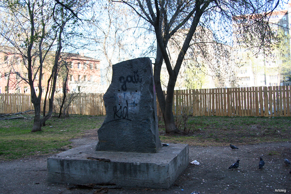 Памятный камень на ЖБИ с не отломанной табличкой. Около остановки "Супермаркет Кировский" (со стороны поликлиники по адресу Сыромолотова 19) ![]() Не испоганенный памятник в сквере ул. Куйбышева- пер. Насосный ![]() |