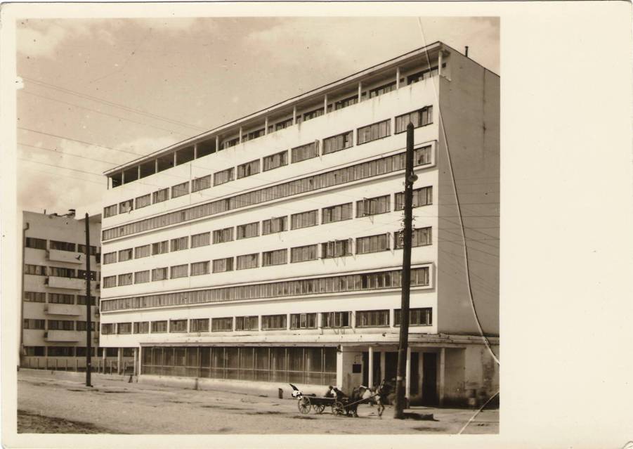 Фотография 1932 года. В месте где сейчас остановка видна большая очередь.