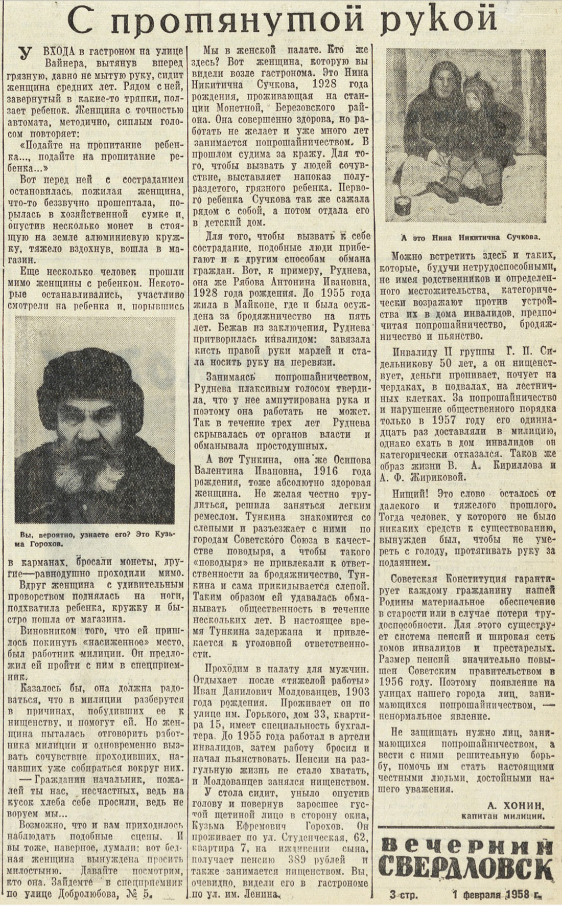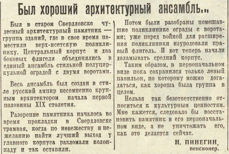 Н.Пинегин. «Вечерний Свердловск». 30 января 1958г. ![]() |
