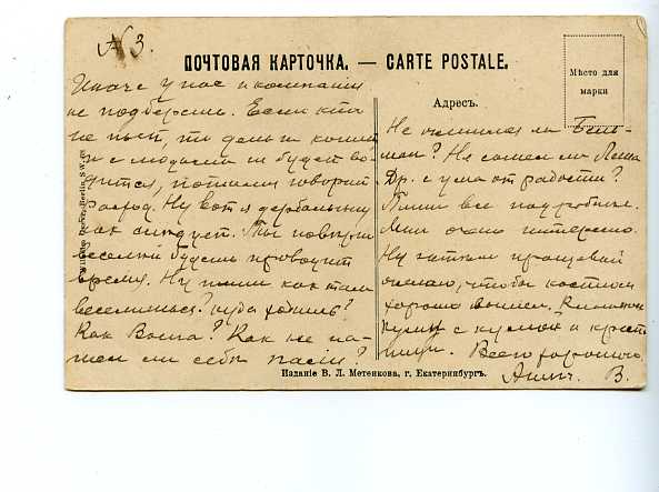 ![]() с молотка Возможно, адресат этот человек: "Чекалов Василий Матвеевич, 1892 г. р. Место проживания: Колпинская ул., д. 15, кв. 46. Дата смерти: февраль 1942. Место захоронения: Серафимовское кладб. (Блокада, т. 33)" http://clck.ru/1A58q |