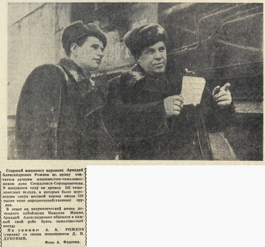 Кочегары паровозов, стрелочники, кондукторы и составители поездов. "Уральский рабочий" 13 августа 1941г. ![]() |