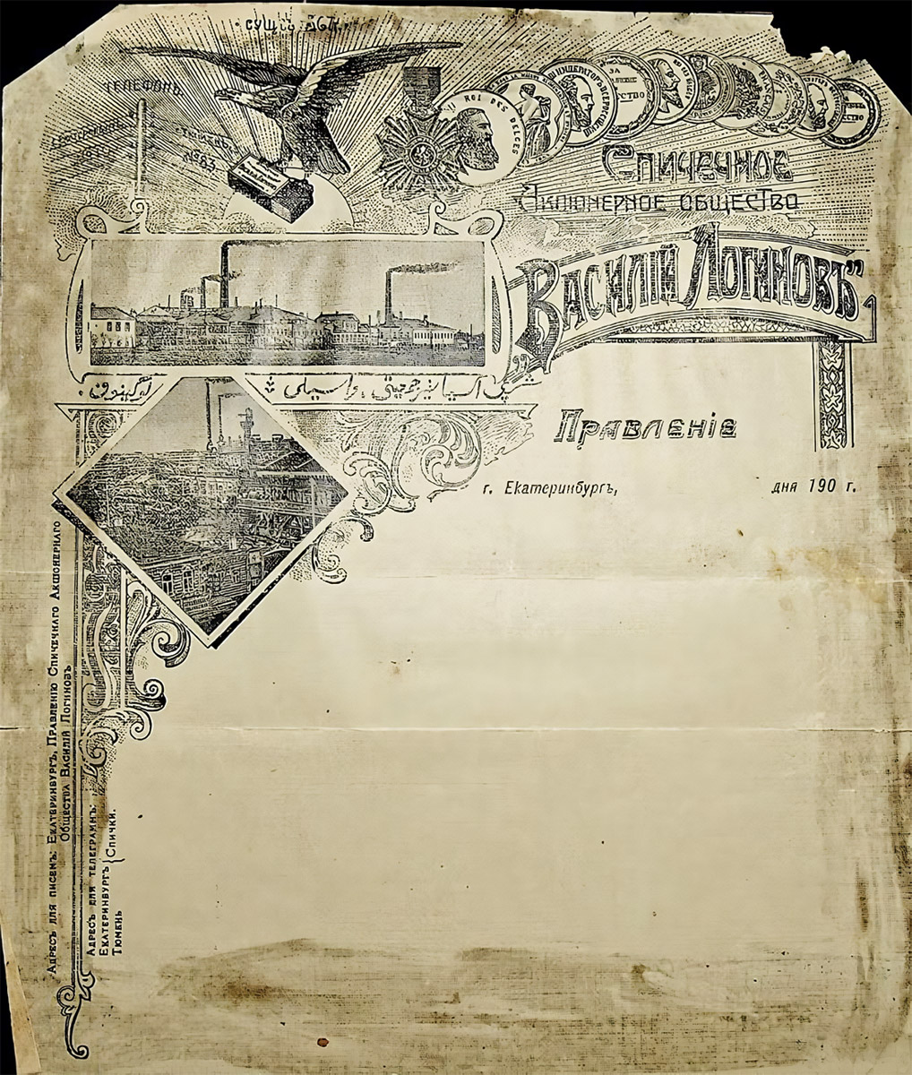 Открытка. Спичечное Акционерное об-во "Василий Логинов" в Екатеринбурге.
