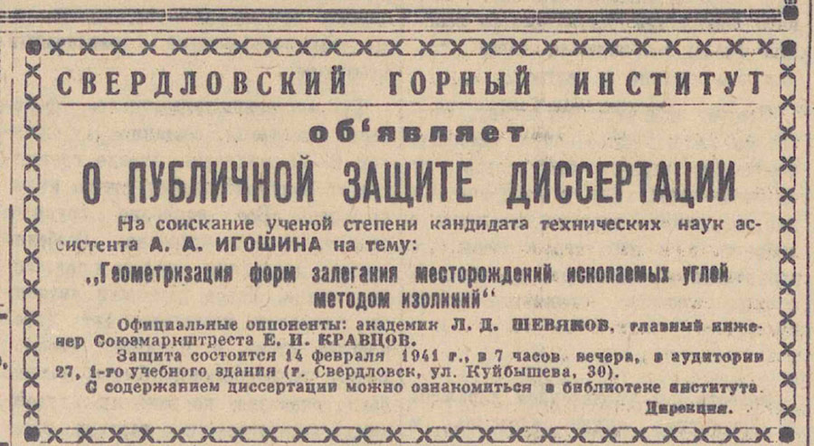 Статья "Горный институт" в газете "Уральский рабочий" от 15.07.1952. Выложил Сергей Делькин. В статье напечатана фотография Анатолия Грахова.