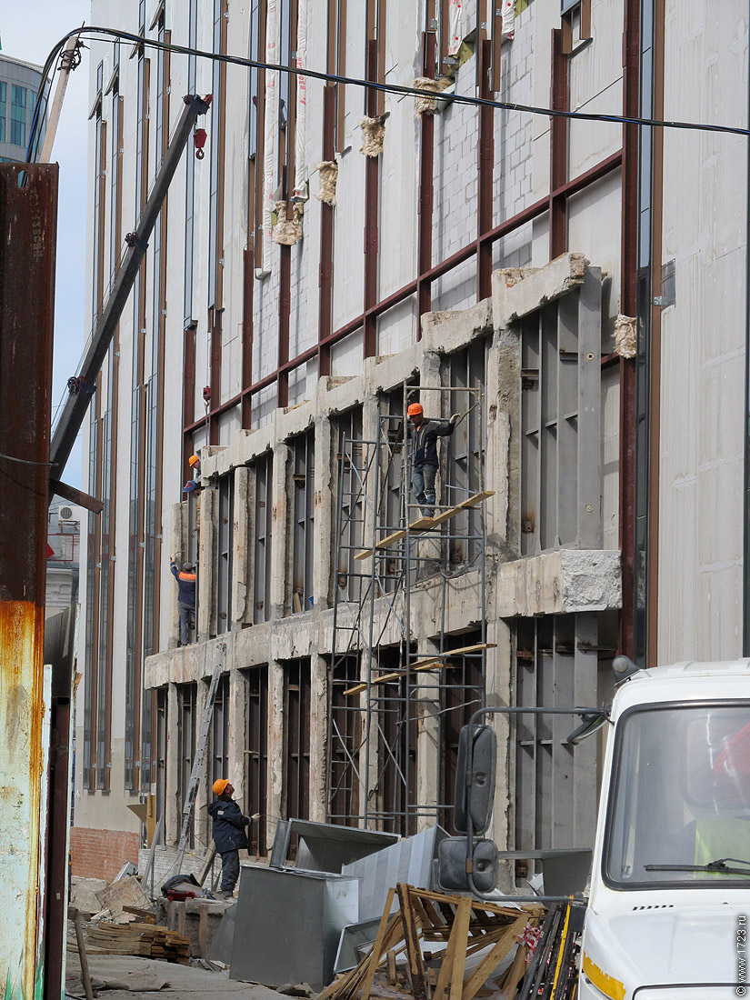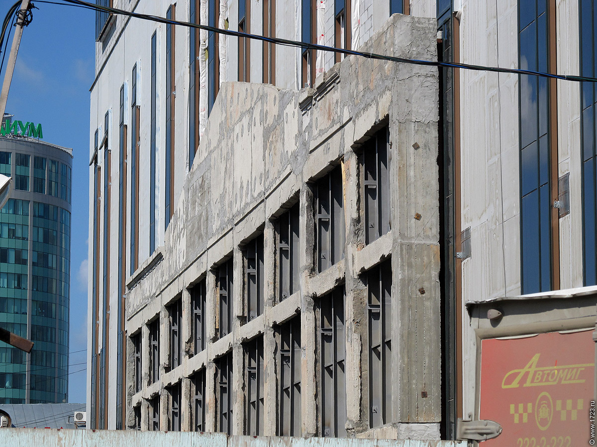27 апреля 2015 Демонтированные элементы прежнего здания все время строительства хранились у застройщика. Как пишет портал "E1.RU", от старого Пассажа останется три фасада. Один, со стороны переулка Банковского, был сразу на месте закреплён и не перемещался. Он закрыт баннером. Фасады с переулка Театрального и улицы Вайнера были демонтированы и будут собраны по номерам. По словам застройщика, площадь торгового центра составит 64 тысячи квадратных метров. В здании будет семь уровней, включая два для подземного паркинга почти на 500 машино-мест. Сдача нового "Пассажа" запланирована уже на август. Напомним, реконструкция исторического здания в самом центре города многими горожанами была воспринята критически – о памятнике архитектуры все время реконструкции напоминала лишь небольшая стена, оставленная со стороны Администрации. источник -------------------- |