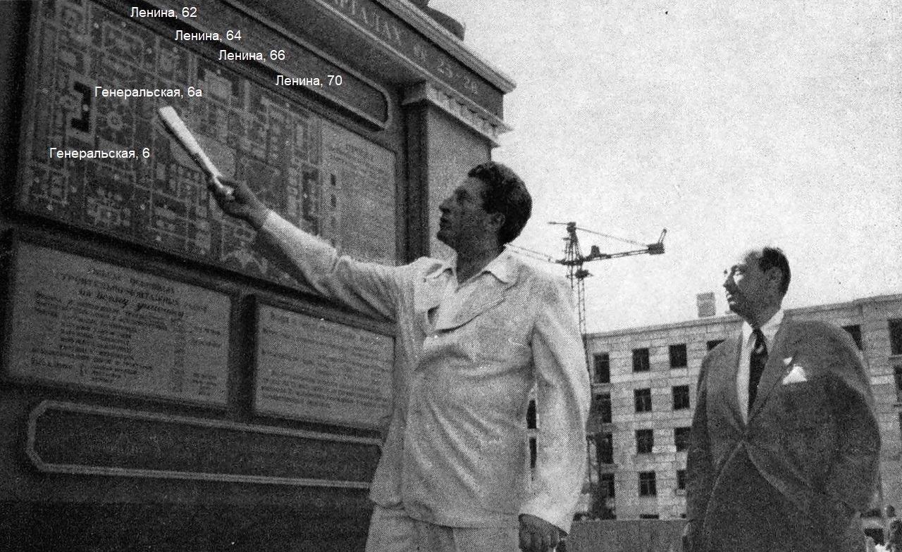 1958 год. Строительство в кварталах 25-26 (Ленина-Гагарина-Малышева-Генеральская).