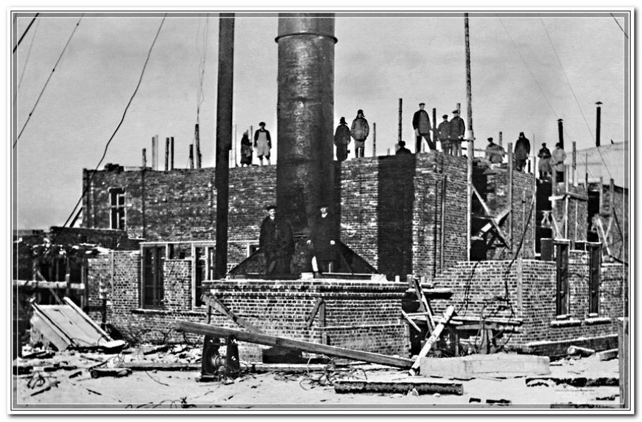 ![]() Ранее в этой теме встречалась ч/б фото фасада этого корпуса, слева от ворот был пристрой с двумя трубами. ![]() Кровля новенькая. ![]() |