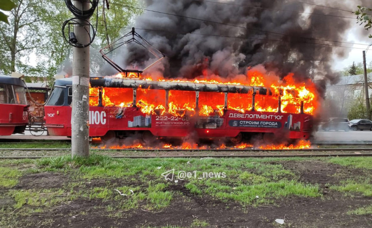 22-05-2024 на остановке "пер.Рижский" у маршрута №1 сгорел второй вагон.