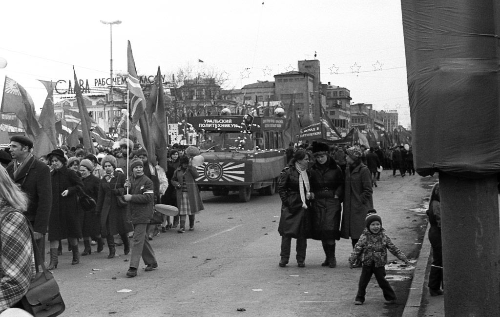 В 1988 году прошел один из последних Первомаев под эгидой КПСС. Уже через год в городе начнутся огромные митинги в поддержку народных депутатов и критики партократии. А ещё через год на предвыборном митинге у кинотеатра «Космос» выступит Б.Н. Ельцин. С грузовика!