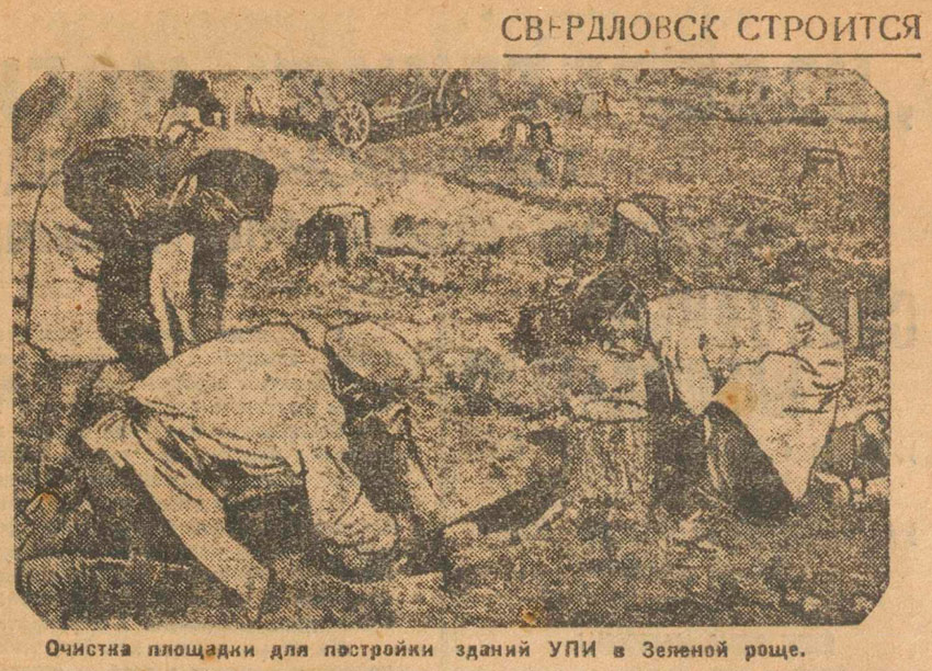 Очистка площадки для постройки зданий УПИ в Зеленой роще.