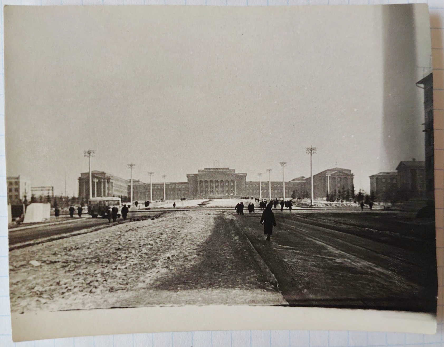 Выпускники Уральского индустриального института перед отъездом на учебу в военное училище. Справа видны руины взорванного Горного университета. 1941 год.