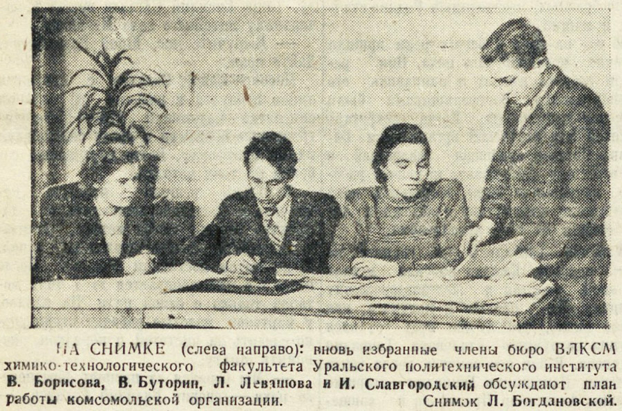 Члены бюро ВЛКСМ химико-технологического факультета УПИ.
