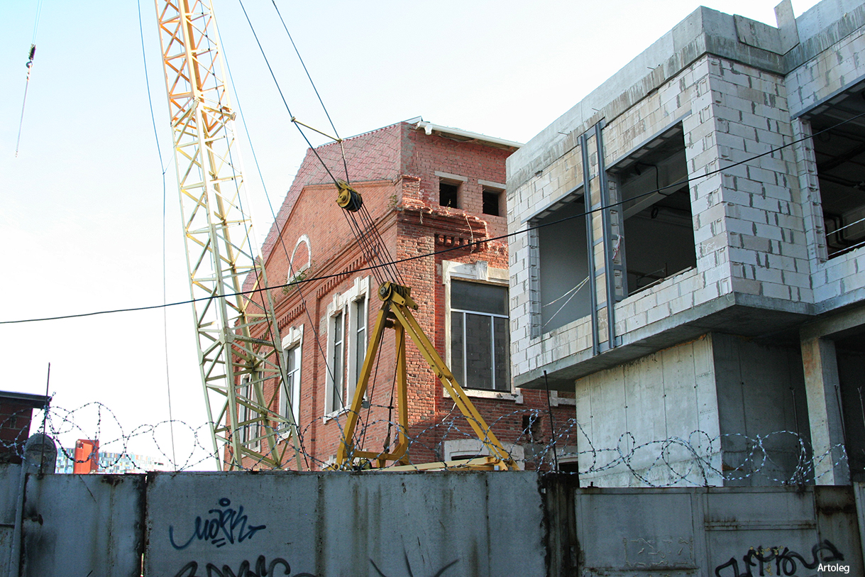 Построен в 1916 году. Используется по первоначальному назначению. Автор проекта неизвестен. Основателем и строителем является первый руководитель завода горный инженер Н.Н. Барабошкин. Инвестором строительства выступило Николо-Павдинское акционерное общество. В первые десять лет на заводе освоена технология получения чистых металлов платиновой группы и изделий из них промышленного назначения. В годы Великой Отечественной войны налажен выпуск продукции для авиации, радиотехники, подводных лодок. После войны развиваются все виды обработки благородных металлов, огранки драгоценных камней, производства ювелирных изделий, создан мощный научный центр. Шесть его сотрудников стали лауреатами Государственных премий и премий Совета министров СССР. В 1970-е года завод коренным образом реконструируется. От первоначальной застройки сохранился лишь производственный корпус, хорошо воспринимаемый со стороны улицы Шейнкмана. Он представляет собой вытянутое в широтном отношении двухэтажное здание. Архитектурное решение фасадов традиционно для индустриальных зданий конца XIX - начала XX веков. Северный фасад акцентирован двумя слабо выступающими ризалитами лестничных клеток и неглубокими прямоугольными нишами на оба этажа. Ниши украшены сухариками под карнизом. В нишах помещены крупные окна 1-го и 2-го этажей, оформленные рамочными наличниками с замковыми камнями. Перемычки окон 1-го этажа лучкового очертания. Торцевые фасады имеют симметричные решения. В них использованы по три идентичные северному фасаду ниши с двумя ярусами оконных проемов. В простенках и по углам добавлены слабо выступающие лопатки. Покрытие корпуса пологое двускатное. С северной и южной стороны украшено ритмом квадратных парапетных столбиков со сквозным металлическим ограждением. Торцевые части здания завершены парапетными фронтонами с арочными слуховыми окнами в тимпанах. А.А. Стариков (По материалам книги "Свод памятников истории и культуры Свердловской области". Т1. – «Сократ», 2007. – С. 263) источник ![]() ![]() источник -------------------- |