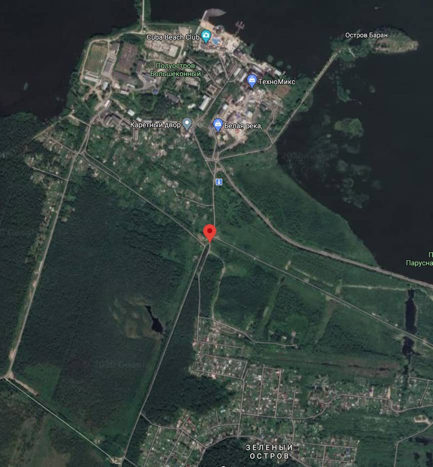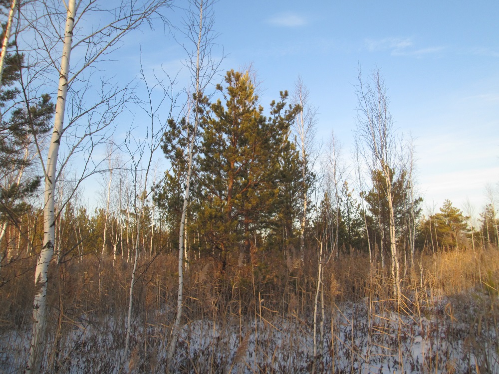 1. На запад от о. Петух среди зарослей тростника растут берёзы и сосны