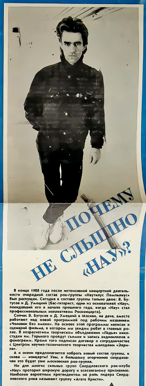 Обсуждается фестиваль, литовка (ценура) песен, без которой нельзя концертировать. Деньги за концерты музыкантам получать нельзя. Рок-клуб, организация любительская. билеты на концерты продают дворцы и дома культуры. На что Илья Кормильцев переформулировал цитату их Гимна Великой Красной армии Николая Клюева: «Музыка хижинам, деньги дворцам». Автор фото неизвестен. На фото с право налево: Виктор Комаров, Дмитрий Умецкий (Наутилус), Егор Белкин (Урфин Джюс), Вячеслав Бутусов (Наутилус), . Второй ряд: ? Борис Чердаецев, А. Пантыкин (Урфин Джюс), ? Макс Ильин (Метро). с сайта https://ok.ru/profile/293960618245/album/50...97/917678852869 |