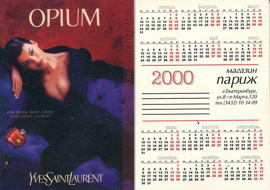 Карманный календарик "г.Екатеринбург. Магазин «Париж». 2000 год."