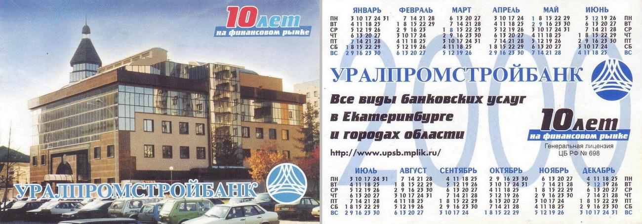 Карманный календарик "г.Екатеринбург. Уралпромстройбанк. 2000 г."