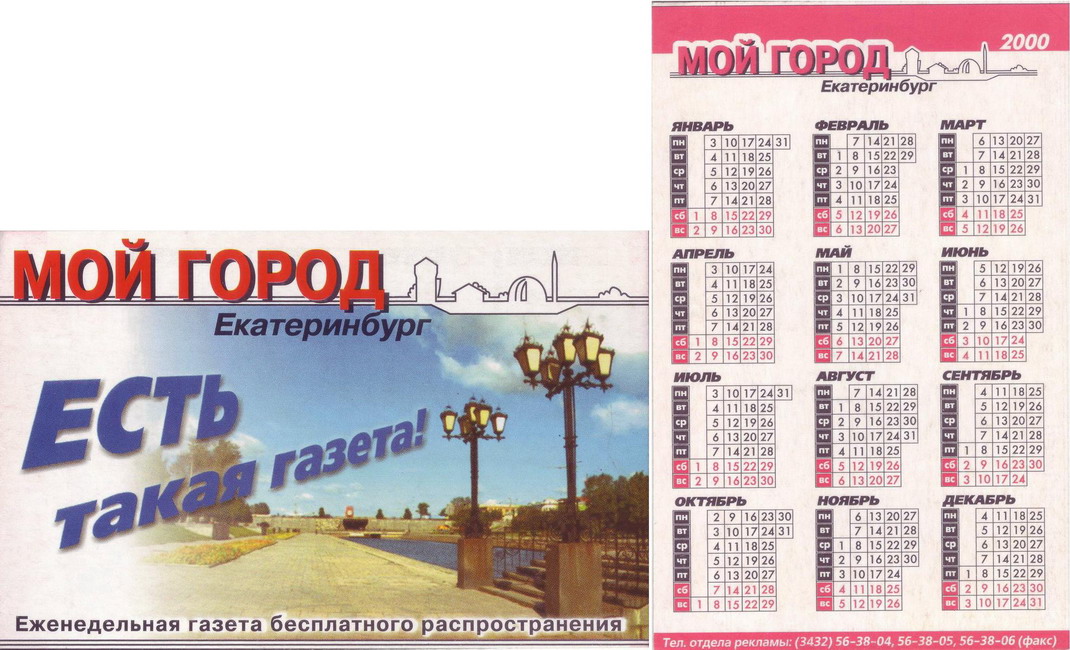 Карманный календарик "г.Екатеринбург. Газета «Мой город». 2000 г."