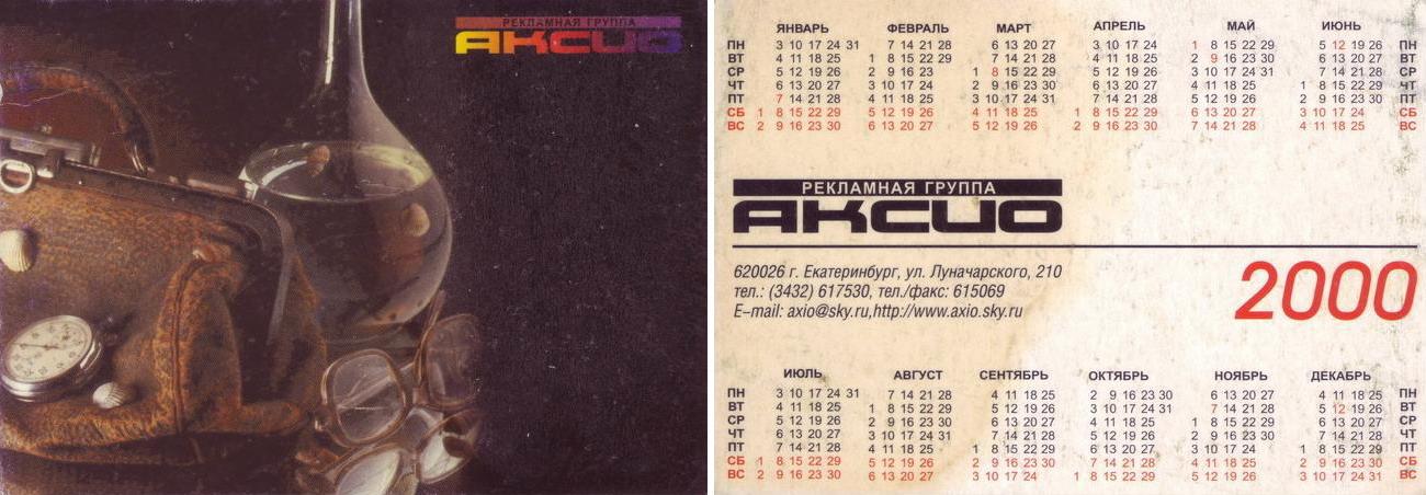 Карманный календарик "г.Екатеринбург. Рекламная группа «Аксио». 2000 г."