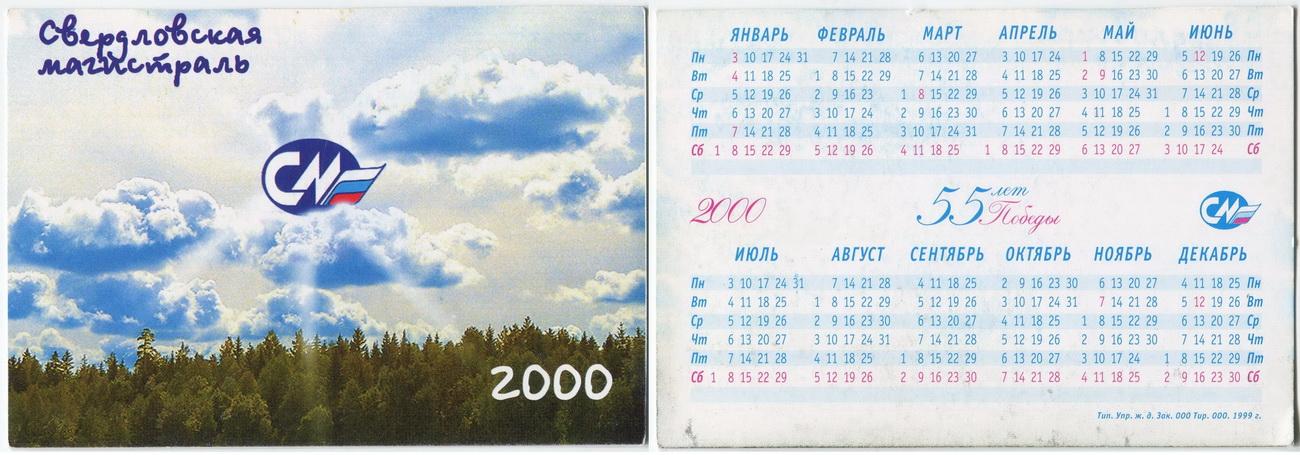 Карманный календарик "Свердловская магистраль. 55 лет Победы. 2000 г."