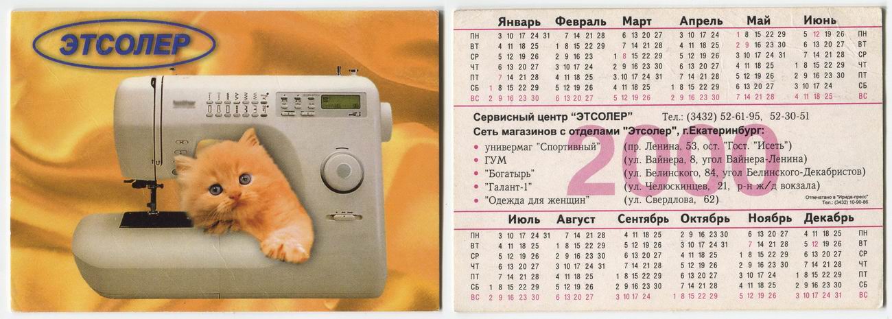 Карманный календарик "г.Екатеринбург. Компания «Этсолер». 2000 г."