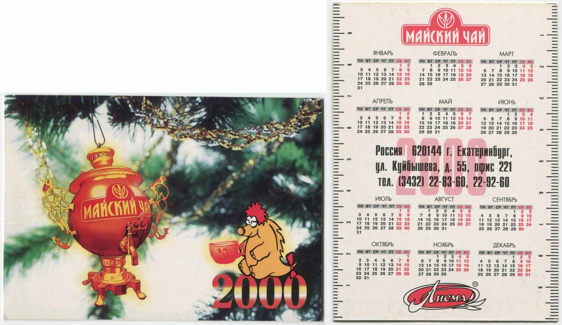 Карманный календарик "г.Екатеринбург. Компания «Майский чай». 2000 г."