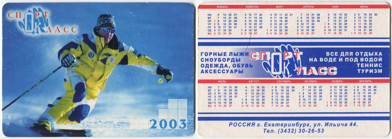 Карманный календарик "г.Екатеринбург. Магазин «Спорт класс». 2003 г."