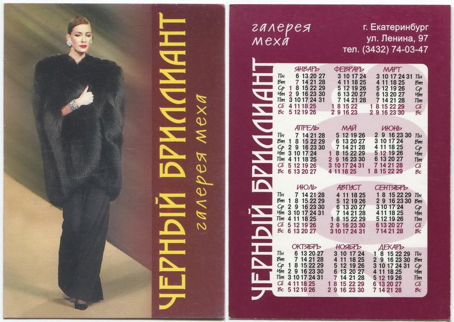 Карманный календарик "г.Екатеринбург. Галерея меха «Чёрный бриллиант». 2003 г."