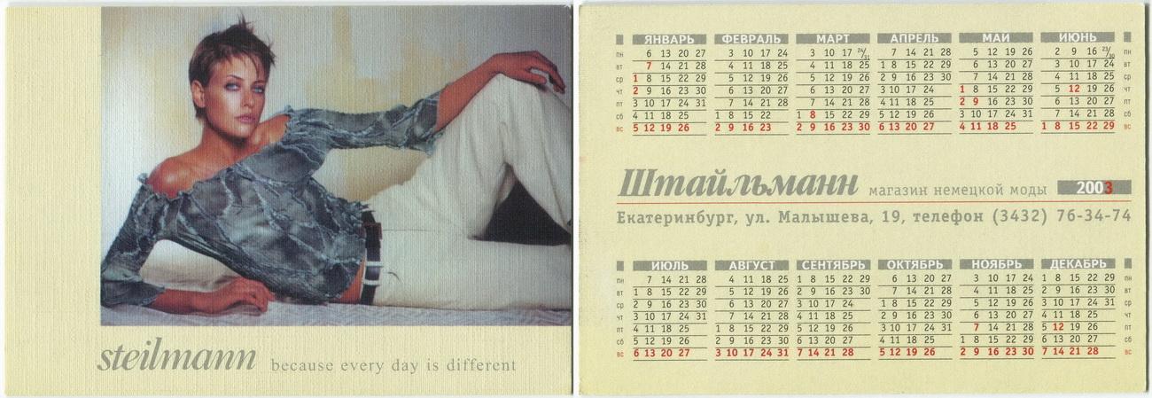 Карманный календарик "г.Екатеринбург. Магазин немецкой моды «Штайльманн». 2003 г."