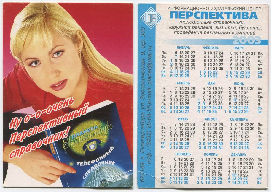 Карманный календарик "г.Екатеринбург. Информационно-издательский центр «Перспектива». 2003 г."