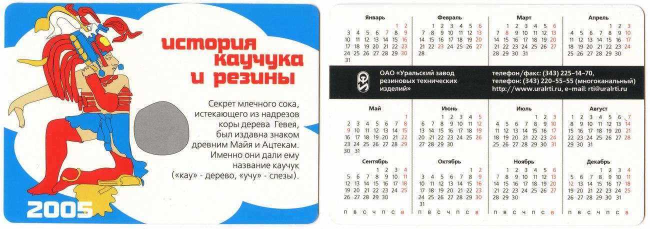 Карманный календарик "г.Екатеринбург. ОАО «Уральский завод резиновых технических изделий». 2005 г."