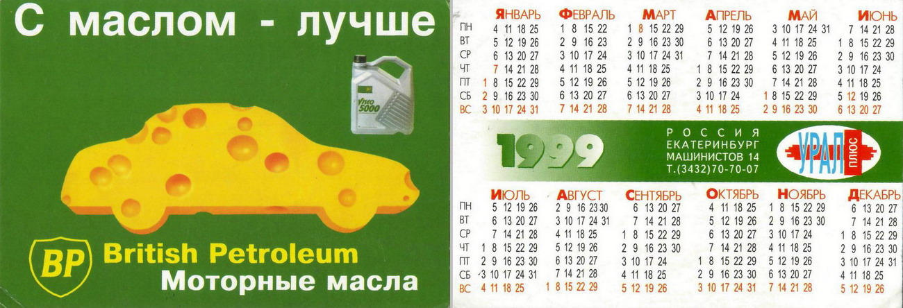 Карманный календарик "г.Екатеринбург. Автомагазин «Урал Плюс». 1999 год."