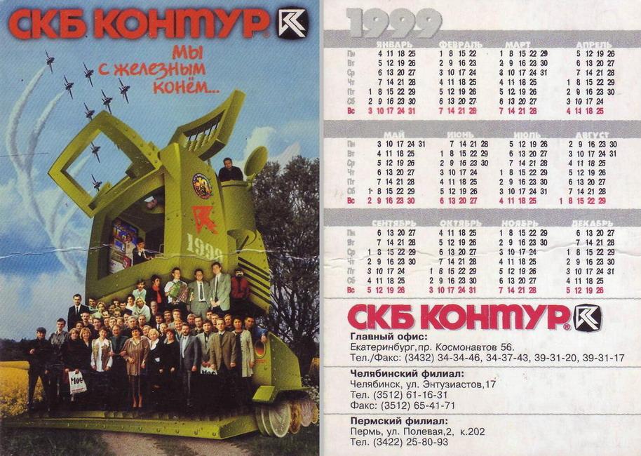 Карманный календарик "г.Екатеринбург. Компания «СКБ Контур». 1999 г."