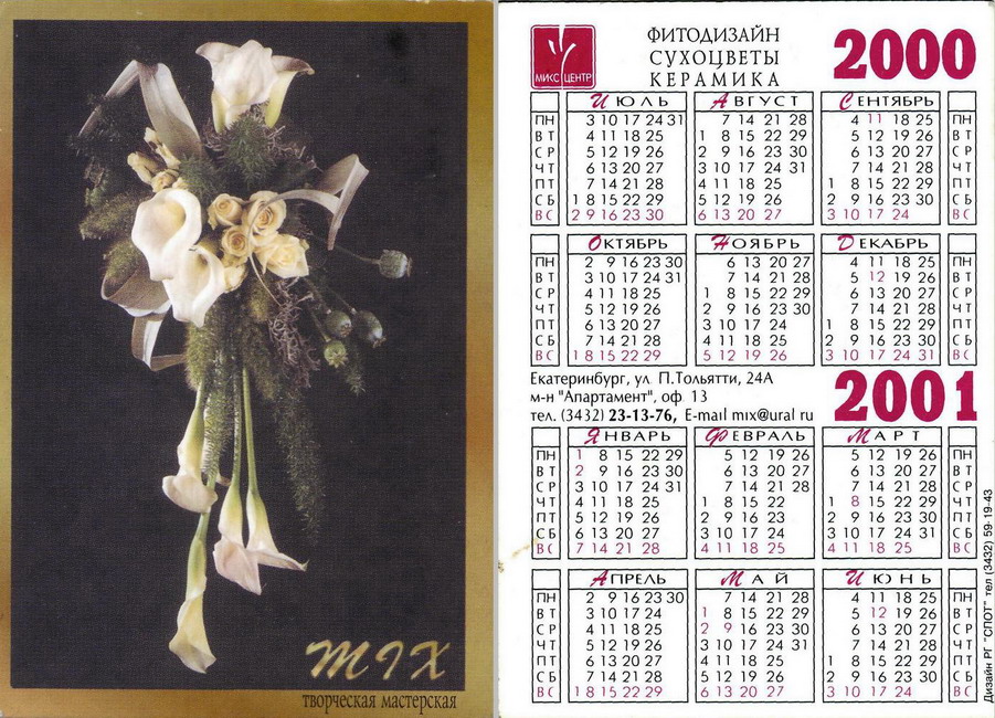 Карманный календарик "Творческая мастерская «MIX». 2000-2001 гг."