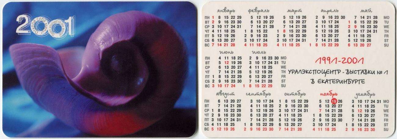 Карманный календарик "г.Екатеринбург. Уралэкспоцентр. 2001 г."