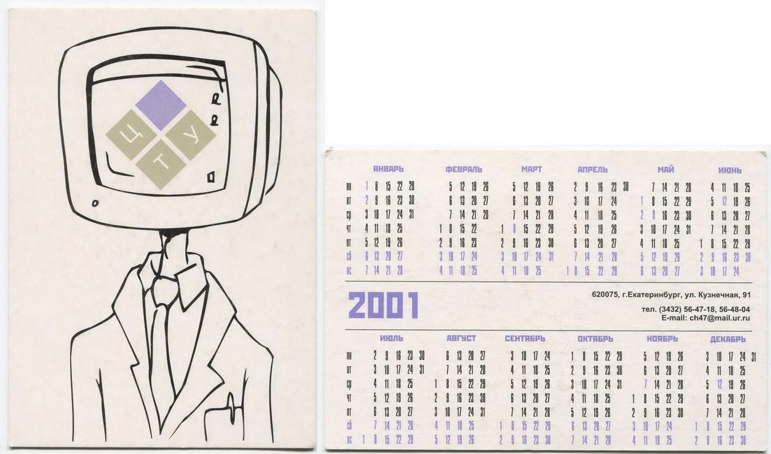 Карманный календарик "г.Екатеринбург. ЦТУ. 2001 г."