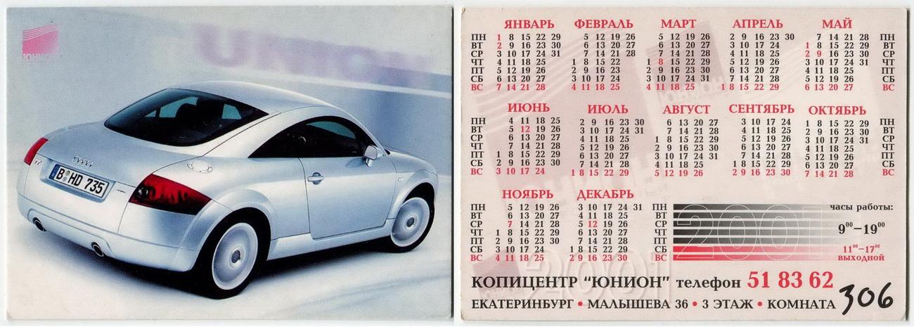 Карманный календарик "г.Екатеринбург. Копицентр «Юнион». 2001 г."