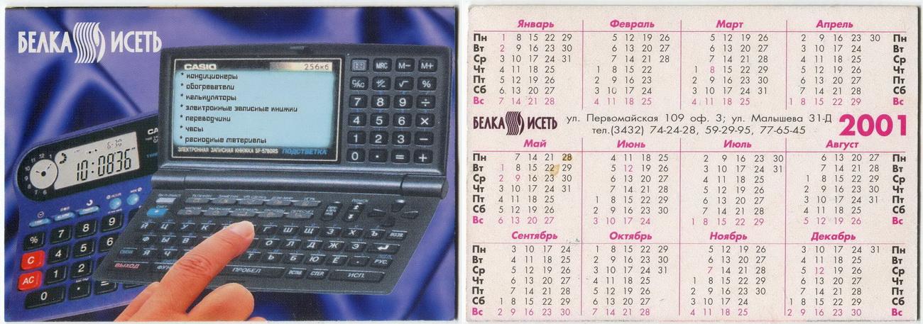 Карманный календарик "г.Екатеринбург. Компания «Белка-Исеть». 2001 г."