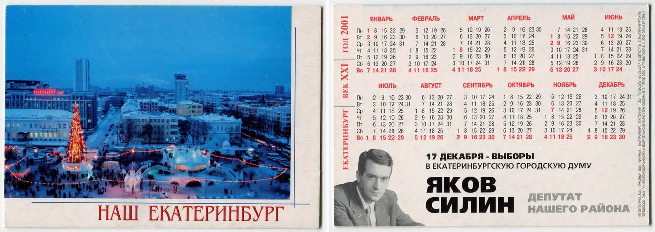 Карманный календарик "г.Екатеринбург. Выборы в Екатеринбурскую городскую думу. Яков Силин. 2001 г."