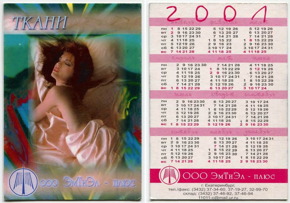 Карманный календарик "г.Екатеринбург. ООО «ЭмТиЭл-плюс». 2001 г."