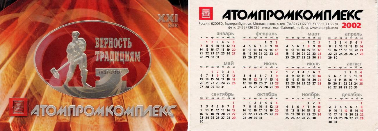 Карманный календарик "г.Екатеринбург. АО «Атомпромкомплекс». 2002 г."