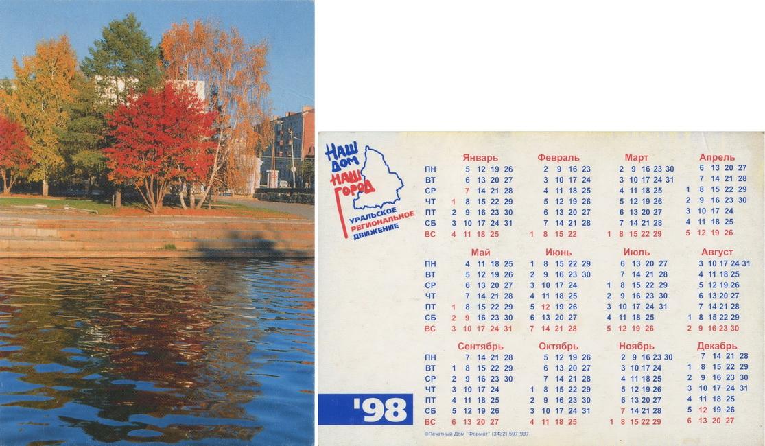 Карманный календарик "г.Екатеринбург. Уральское региональное движение «Наш дом - Наш город». 1998 г."