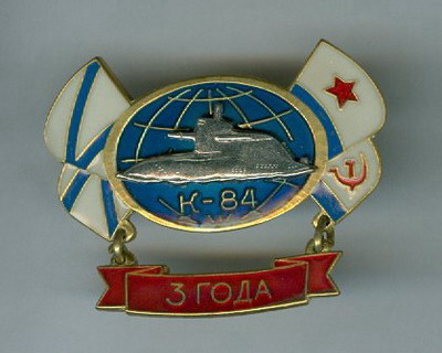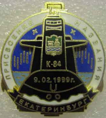 9 февраля 1999 года приказом ГК ВМФ К-84 присвоено почетное наименование "Екатеринбург". Знак в честь этого события.